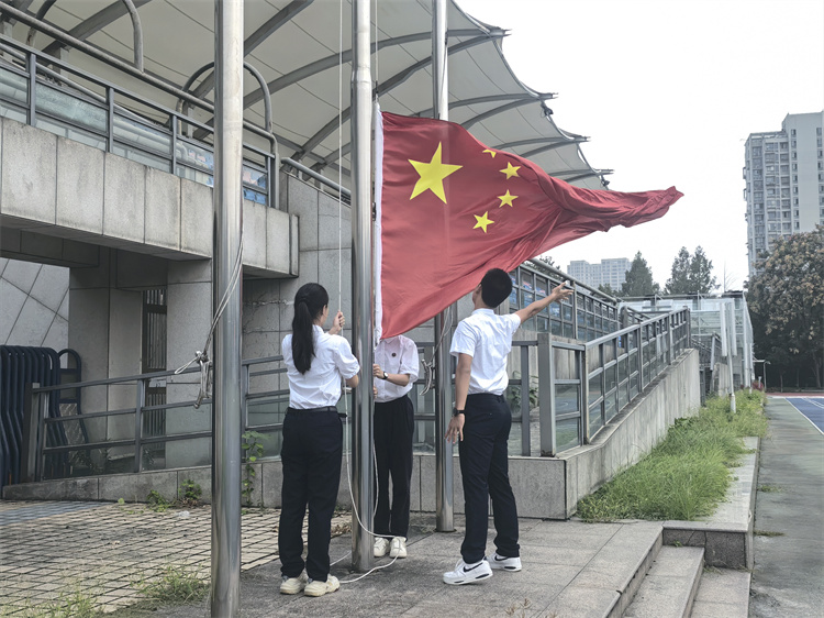 金秋十月,丹桂飘香。10 月 1 日上午 8 时,杭州市文澜中学校园内红旗飘扬、气氛庄重,400 余名学生与家长代表齐聚操场,共同参加庆祝中华人民共和国成立 76 周年升国旗仪式,以青春之名向祖国母亲献上诚挚祝福。