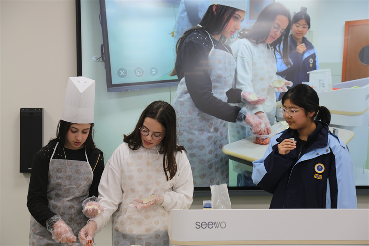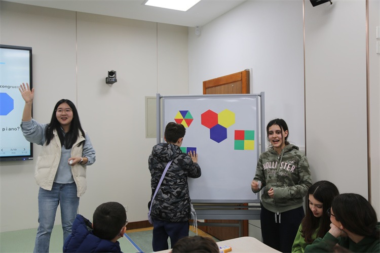 意大利师生还深入课堂,随堂听课,英语、数学、美术老师全程用英语授课,中外学生共同讨论,共同回答老师的问题,课堂氛围活跃,学生们兴趣盎然。英语课上,介绍中国传统节日春节及传统食品,大家一起动手包饺子,在实践中感受中国饮食文化;美术课上,共同绘制国画熊猫,在笔墨丹青中领略中华传统文化的韵味,中外学子相互交流、彼此学习,收获颇丰。