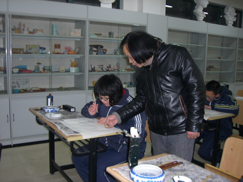 陈老师在给学生做技法示范