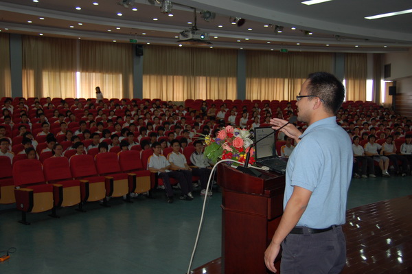 郑瑞博士首先用英语作了短暂的自我介绍,接着他利用世博主题“Better City,Better Life”改编而来的“Better English,Better Life!”作为中心开始说明英语的重要性。幽默风趣的郑博士不时地冒出了几个笑话,将气氛几度推向了高潮。随着同学们兴趣的高涨,郑博士又用搞笑的英语顺口溜来训练同学们的口语和记忆能力。虽说是练习,但在大家的配合下,快乐与知识并存,短暂的一个多小时一晃而过,最后郑博士利用了几句经典的英语广告作为结尾,将会场气氛再次推向了顶点。下午4点30分,郑瑞博士在同学们热烈的掌声中离开了会场。