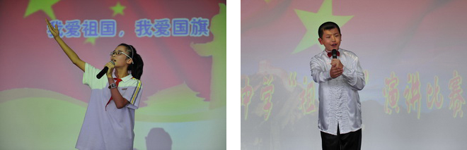 来自十个班级的十八位同学依次上台,给老师和同学们献上了一台精彩的表演。他们或激情澎湃,或深情款款;或回顾祖国的历史,或展望祖国的未来;或以赞叹身边的小事来歌颂日益文明化的祖国,或以“明天祖国以我为傲”的口号向祖国明志。在一次又一次响起的热烈掌声中,初一年级的第一次演讲比赛胜利闭幕。