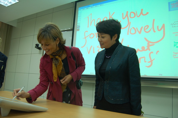 Janet Sheriff女士饶有兴致地使用电子手写板
