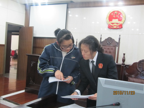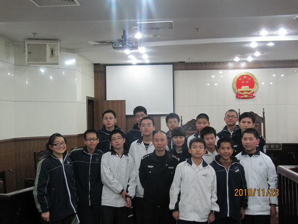 在“12.4”全国法制宣传日十周年到来之际,在我校法制宣传周活动开展之前,我校国际时政社、法律社两个社团在辅导老师周悫、陈世珠带领下,参加了拱墅区人民法庭庭审观摩活动。这是区司法局牵线搭桥,区法庭大力支持教育的一件好事,是校园社团活动由模拟法庭走向现实法庭的一次社会实践活动,也是社团成员又一次走出校园参加现场开庭观摩,这对他们正在开展的法制宣传、模拟法庭活动是一次有力的指导与帮助。