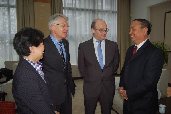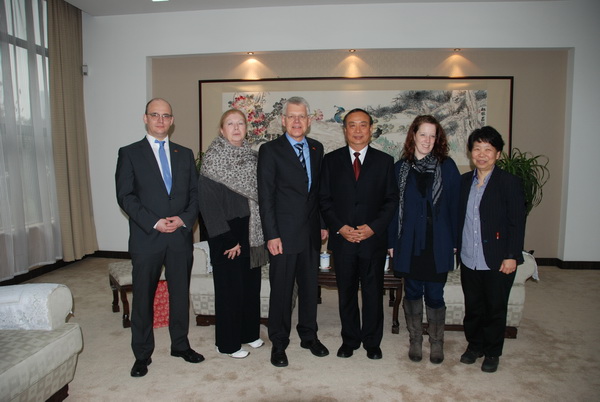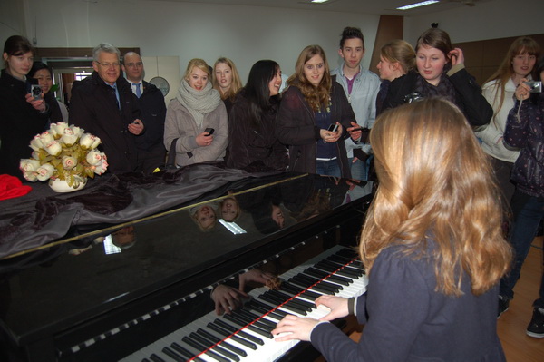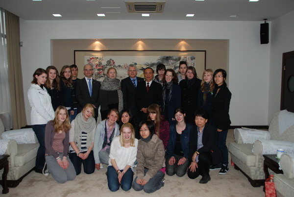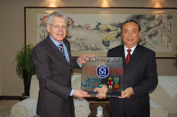 3月22日上午,德国克雷菲尔德市中学师生一行21人到我校进行友好访问,克雷菲尔德市各中学师生与我校友好交流始于1998年,在多年的师生交往、互动中,结下深厚情谊,双方的友好交流对促进中德教育文化的深入交流,青少年学生之间的相互了解相互促进起到积极作用。我校任继长校长热情接待了访问团。访问团对我校的教育教学理念、丰富多彩的校园生活和众多的学生社团活动及一流的教育教学设施、美丽校园极为惊叹。Klaus Neuenhofer校长感慨地说:“就是在德国,这样的学校也极少见。”并代表德中友协主席邀请任校长再次去德国讲学。