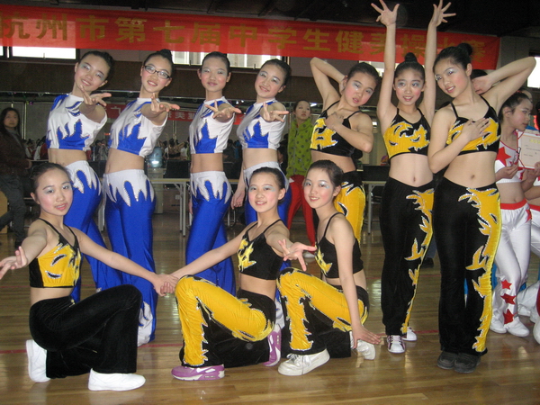 2011年3月24日—27日,在中国美术学院举行的杭州市第7届中学生健美操比赛中,第一次参赛的我校健美操队10位女生奋力拼搏,一举荣获初中普及组自编集体轻器械操第一名及初中普及组自编集体有氧徒手操第三名。初二(7)班的张议丹同学荣获 “体育道德风尚运动员”,祝君老师评为优秀教练员。在此,对认真、刻苦训练的同学所取得的成绩表示祝贺,同时对支持和关心我校健美操队发展的校领导、班主任及各位家长表示衷心的感谢!