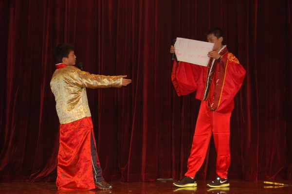 4月7日我校初二年级举行了一场极具创意的英语课本剧比赛。此次课本剧题材相比去年的英语剧更为贴近生活,而且其中融入了“穿越”、“机器人”等热门元素,使整个会场笑声连连。在这个灯光灿烂的舞台上,我们看见了追求幸福的小美人鱼公主,我们看见了能干的机器人保姆,我们看见了可爱的看电视姐妹花,我们看见了“被”穿越到二十一世纪的少年,我们看见了无比自恋的秦王和无厘头的荆轲……一个个鲜活的人物,一段段流利的对话,各个班级都拿出了看家本领为我们展现了一台精彩的表演。当然这次活动也提高了我们的口语水平,让我们在学习英语的过程中学出了创意,学出了快乐,学出了精彩!这次活动也再一次展现了文澜中学学生应有的风采!