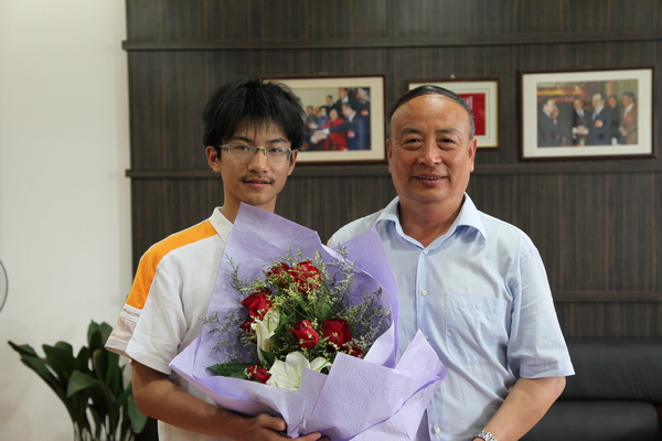 任继长校长与周舒翔同学合影