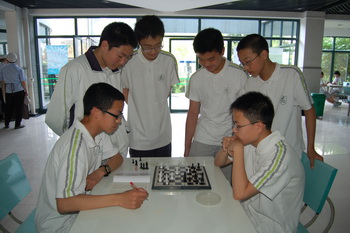 18日下午第三节课后,休闲厅又迎来了另一批“棋才”。初二“尽显棋才”组比赛在这里打响。比赛采取一一对抗淘汰制,场内的气氛凝重而紧张,落棋的声音充斥大厅内,举轻若重。观战者初一(2)班李润杰同学赛后还在形容他的紧张心情,对国际象棋虽然我不是特别在行,但依然感觉到了他们之间那种拼杀的张力,我的心不停地被纠结着,舍不得走开,深怕错过见证最后的结果。棋社负责老师也表示,这样的比赛对选手们无疑是个锻炼的机会,不管成败如何,临场的气氛和心理的训练都是棋手们训练必备的功课。(通讯员 沈超奇 沈舒涵)