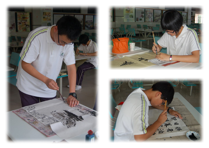 走进休闲厅,墨香扑面而来,这里正在举行初二年级挥毫泼墨组达人选拔赛。虽同为一笔,一墨,所书内容却各不相同,有撰写金文的,由摹写《圣教序》的,还有挥毫对联的。这里是动与静的结合,大字的飞舞与演绎者沉静地姿态相得益彰,共同绘就了这样一幅美的画卷。据记者了解,有的参赛者可谓老资历了,三四岁开始学习,其中虽有中断,但多数还是坚持了下来,别看他们年级不大,获得的荣誉却不少。不少观摩者也纷纷表示,进入比赛场,俨然进入了书画展,选手们都非一般功力之人。(通讯员 徐忆 何梦婷)