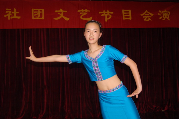 提心吊胆了一周,赛前我还是无法克制住紧张的情绪,止不住地想:跳错怎么办?毕竟有段时间没练了,以前的自信有点动摇了。不过,真要感谢身边的同学们,他们都给我加油打气,纷纷表示看好我,我的自信和笑容又慢慢找回了。拉丁舞是一门艺术,伦巴抒情,恰恰动感,牛仔热烈,桑巴奔放,斗牛有力,经过比较筛选,我选了自己比较擅长的伦巴。换好衣服的我匆匆候场,那刚平复下来的心又倏地活蹦乱跳起来,音乐响起,看到台下一张张好奇而期待的眼神,我开始了舞蹈。不会出错,这舞我顺畅得很,我这样告诉自己。有人在鼓掌,虽听不真切,却给了我莫大的信心,我开始自然起来,旋转,转头,再重复,心里踏实多了,一套舞步结束,我深深向大家鞠躬,感谢你们的掌声!蓦然回首,原来那片绚烂的舞台是那么地富有魅力,明年,我还会再来!