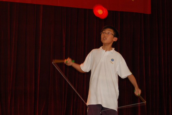 19日下午3点05分,初一初二同学聚集到图书馆报告厅观看本次艺术节另一精彩赛事——动作之美组海选赛。动作之美组不仅是美的代言人——女生们的舞台,也是力的代表——男生们一显身手的地方。这里不仅有活力四射的健美操,动感无限的街舞,充满民族风味的民族舞,还有帅气的Robot,火热的伦巴, 精彩的空竹。随着音乐的响起,初一(8)班的郭嘉麒同学俏皮轻灵的舞动着手中的笛,宛若一朵“水中花",初一(9)班的刘佳晨同学则将一位傣家姑娘的娇柔展现的淋漓尽致,初二(4)、(7)班的Oh组合在周杰伦的歌声中既有天衣无缝的相互配合,又有随意的个人动作秀,让观众大饱眼福,这是他们的时间秀,这是属于他们的个性化舞台,大赛在一阵阵掌声潮中结束。(通讯员 徐忆 蔡楚琦)