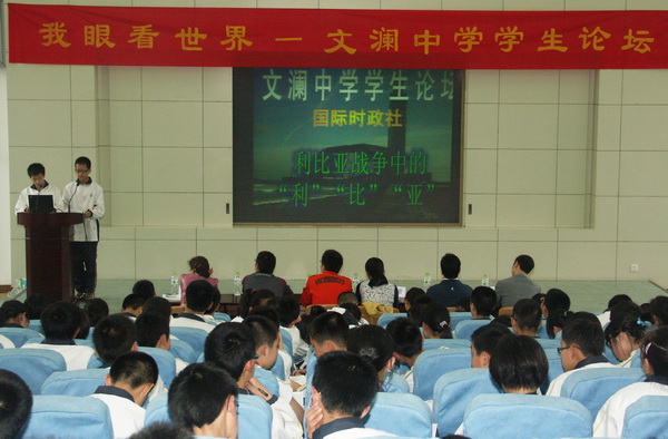 你知道我们的地球已经千疮百孔了么?交际英语社告诉你拯救地球已刻不容缓。身为杭州人,你了解杭州么?旅游英语社用流利的英语告诉你杭州的特色吃、住、行。旅游地理社介绍了欧洲最美的城市布拉格。论语精读社用“孔子的减法”和“乐于学”有趣的标题抓住了观众的眼球,茶文化社则分别从龙井的小层面和茶道传统的大层面讲起,将茶文化娓娓道来。走进论坛,你能了解消费者权益保护的相关法律条文,睥睨唐诗宋词传统文化,走进大文学家莫泊桑和雨果,聊聊本拉登之死,侃侃利比亚的“利”益、“比”较和“亚”洲影响。充分的准备,丰富的知识储备让学生论坛成为了同学们增长见识,开阔视野的大舞台。初一(10)班的王梦琦同学参加完论坛后不禁感叹:“没想到我的同龄人对世界、社会都能进行这样深刻的思考,看来我还得更努力啊!”很多同学在开坛后也都纷纷表示,知识的汲取是无止尽的,现在要更加努力的扩充知识,这样以后在同学面前也好有谈资。(通讯员 徐忆 吉如一)