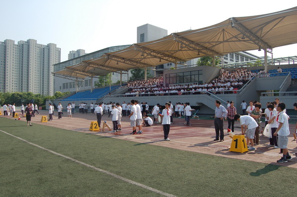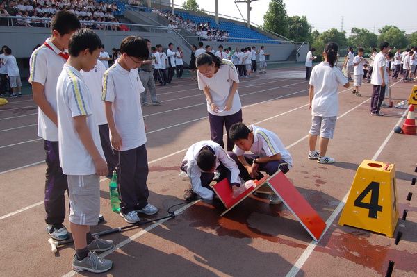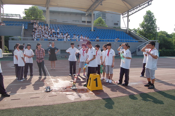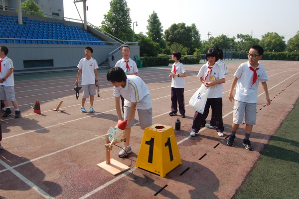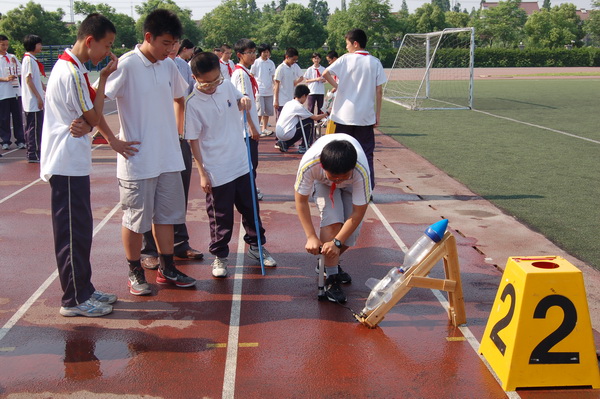 5月30日下午第三节课后,我校操场上顿时沸腾起来,初一年级的水火箭比赛将在这里举行。水火箭是艺术节的一项传统比赛,学生们根据所学的科学知识自制水火箭,看谁在同等条件下能够发射得远。比赛伊始,各班选手个个摩拳擦掌,进行着紧张的装备调试,虽然同为水火箭,外形,体积,支架却各具特色,充分体现了同学们的动手能力和想象力。“嘭”地一声,只见一只水火箭腾空而起,在空中划出了一条美丽的弧线,紧接着,相继不断的响声,各班的水火箭纷纷升天,看台上的同学们不时发出赞叹声和惋惜声。“我太紧张了,看见别的班选手都能飞那么好,压力还是蛮大的,心也越悬越高。”初一(9)班杜思韫同学这样形容赛时的心情。同学们对水火箭的兴趣充分体现了我校教师寓教于乐的教学思想,不仅提高了学生学习的积极性,更能发挥同学的动手能力,让科学走出课堂,走进生活。(通讯员 金橙 沈舒涵)