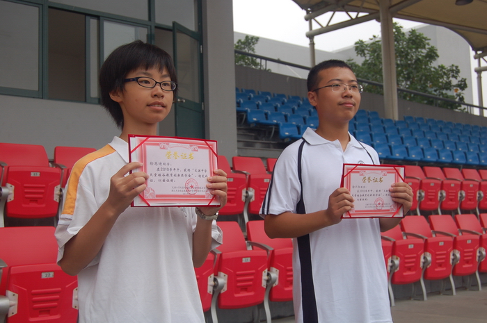 品学兼优特等奖获奖者徐恩迪、徐之恒同学合影