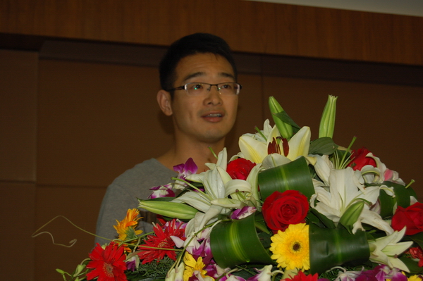 之后,新教师代表樊泽华老师发言,他表示自己新加入作为省级名校的文澜中学的喜悦,感谢学校校长到各部门对自己工作的支持,并就文澜中学的魅力做了五方面的说明。他表示自己作为文澜教师的幸福感,决心做一个让学校领导放心、同事认可、学生喜欢的老师。接着,先进个人代表杨志琴老师也发言。她表达自己一直以来能在文澜中学这个大家庭工作感到高兴,并以毕业学生多次回到母校看望老师为例,印证我校其实已经成为毕业生的心灵故乡,最后她也表达作为文澜人的自豪。