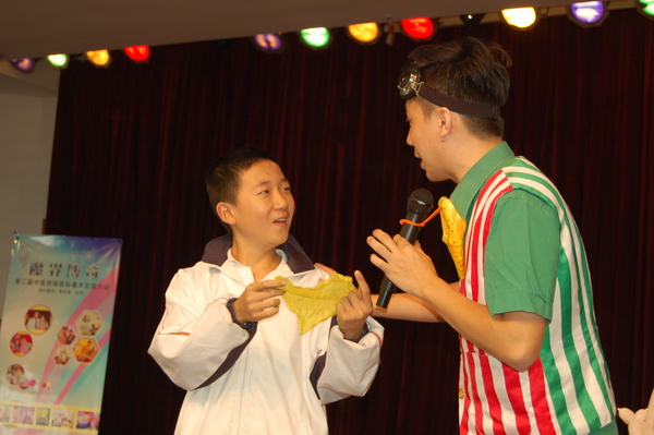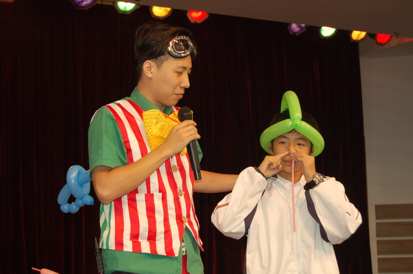 就是这样凭着自己的精湛演技和个人魅力,年轻的李圣堂先生像一个大哥哥一样和同学打成了一片。同学们争着要上台参加表演,但每次只有一两位同学有这种宝贵的机会,得到心仪的气球奖品。因此,表演的舞台成了艺术欢乐的海洋,师生沉浸在快乐的魔术情境中。