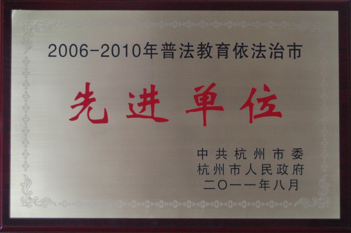 据市委发[2011]50号文《关于表彰2006-2010年普法教育依法治市先进集体和先进个人的通报》,我校荣获杭州市普法教育先进集体。