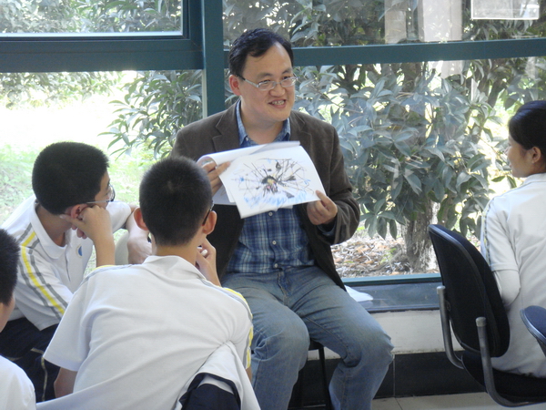 在社团活动课上,魏老师给阳光心理社团的学生上了一堂生动的绘画心理辅导课。他以“怎样让他人、自己了解你”这一主题展开,让学生通过绘画来展示自己,经过小组的交流、社员间的分享让学生进一步认识了自己,同时也加深了相互的了解。