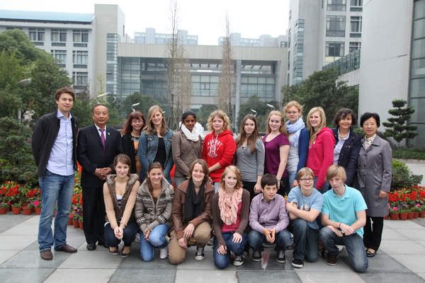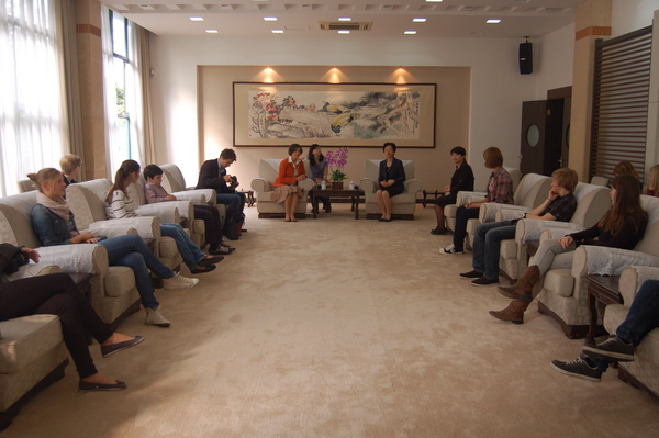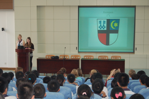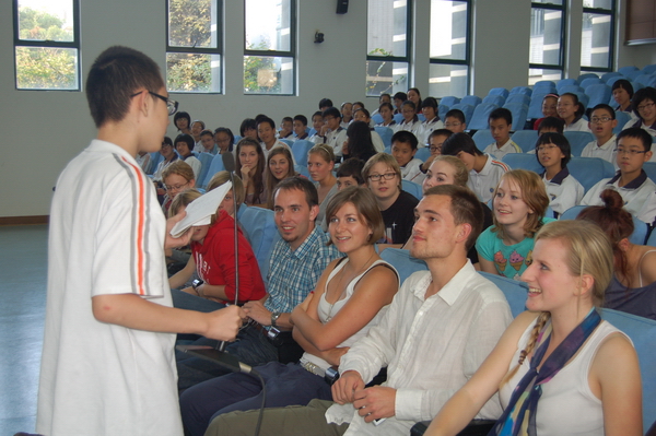 10月14日 德国Kempen市Thomaeum中学师生一行17人在维特副校长的带领下,到我校进行为期一周的访问交流,受到我校领导及师生的热情接待。在座谈交流中,徐青青书记发表了热情洋溢的讲话:“我校与德国学校有长达10多年的交往,去年我校师生访问了对方学校,现在就像老朋友相见,相信我们的友谊长存,双方交流将增进对彼此教育文化的了解。”并向德国师生介绍了学校概况和学校教育特色,对德国师生的来访表示热烈欢迎。德国师生在我校的交流活动丰富多彩。
