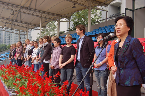 14日德国师生参与了我校运动会,感受了文澜中学运动会的热烈与精彩。