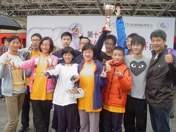 虽然天空不作美,阴冷的雨水下个不停,我校10位运动员不畏强手、斗志昂扬、奋力拼搏,与其他6所学校展开了激烈竞争。初三(9)班同学组织的自行车啦啦队,与学校教师拉拉队全程陪同助威,加油声一浪高过一浪,学生指导老师搀扶擦汗、送水披衣,温暖着每个选手的心。当最后一棒选手王中冲过终点时,在场的全体文澜师生欢呼雀跃,气氛达到了高潮。最终我校代表队在比赛中获得了第一名的佳绩。