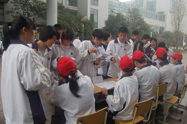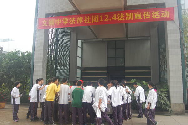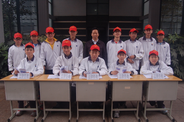11月29日中午,在文澜美丽的校园里,活跃着一群小红帽。他们分成几个小组,分头行动。有的小组向同学们分发由他们自己编印的法制宣传小报;有的小组摆好桌椅,坐成一排,放上 “法律咨询”桌牌,手拿《法律知识手册》,进行法律知识咨询。他们主动热情地接待每一位前来咨询的同学,耐心细致地解答同学们提出的有关法律知识问题。他们俨然是一群活跃在校园的小天使,是法制宣传的志愿者,是法律知识的义务宣传员。