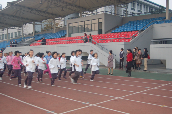28日周一的晨跑拉开了家长开放周的序幕,很早就有部分家长来到学校操场观看孩子们晨跑,有的还加入学生队伍与孩子一起跑步,看孩子们吃早餐的情况,并与全校师生一起参加了升旗仪式。校领导任继长校长代表我校全体教职工向参加本次家长开放周活动的家长表示感谢,与全体师生用热烈的掌声欢迎家长们的到来,同时也报告了我校学生最近一周在全国和浙江省取得健美操一等奖等等优异成绩的喜讯,让家长们很受鼓舞。