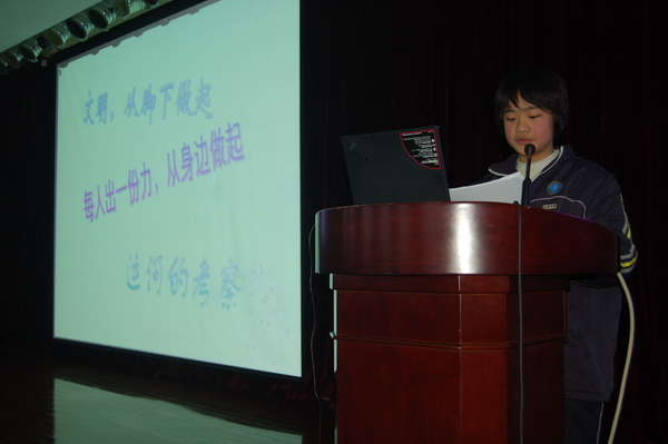 2012年2月20日下午,我校全体初一学子集中在了会议报告厅中,进行寒假实践活动的报告会。大屏幕上是一片恍惚的红色,衬着金色的字和雷锋同志的肖像,色彩鲜明而跳跃,宛若一把火,在冬日里温暖而热情,又恰是表面上静候着的我们胸膛里跳跃的火热的心。十个班都派了代表,在全年级师生面前总结寒假实践活动情况,每个班的ppt做得都十分精美,字字句句让我们看到了同学们在寒假中的努力劳动、辛勤付出。在每一个志愿者活动中,都截取了多张具有代表性的图片,同学们的每一次弯腰,每一次搀扶老人,嘴角都隐约浮现着笑容。我想这些笑容可能是历来最美、最甜的吧!当然我也知道这之中所付出的辛苦,因为我也是活动中的一名志愿者:去博库书城理书。这也可以说是一件不容易的事,整个过程历经2个小时,经过我们的整理,书架显得那样干净、整洁。那天的我,不是一名阅读者而是一名理书者,一名小小的志愿者!