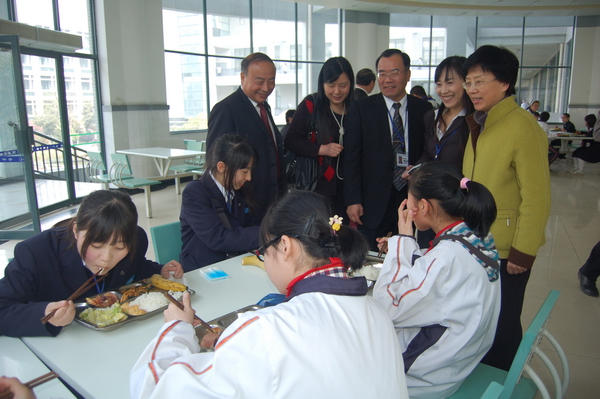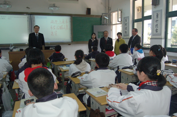 3月26日,任校长和后藤文男副市长等再次举行会谈,商议双方加强教育文化合作事宜,日本学生与文澜学生共同活动、共同上课。后藤文男副市长走进初一(7)班与学生交流,并发表了热情洋溢的讲话。随后,访问团参观了校园,对我校一流的设施和优美的校园环境称赞不已。
