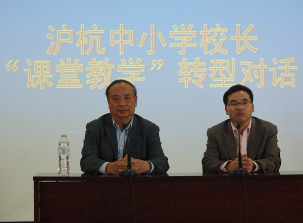4月16日下午,上海市名师名校长张人利工作基地学员一行26人来到我校进行教学研讨交流活动,基地学员均来自上海中小学的校领导,参加这次活动的还有拱墅区教育局副局长赵永芳、周建仁以及拱墅区进修学校、部分中小学校校长。研讨活动的主题是“课堂教学转型”。