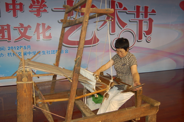 在讲座的最后,郑老师还请了两位同学上台亲身体验织布的过程。伴随着织布机发出的唧唧声,我们仿佛又看到了千年前男耕女织的和美画卷。随着社团文化艺术节的深入,这副美丽的画卷还将继续在同学们面前徐徐展开。