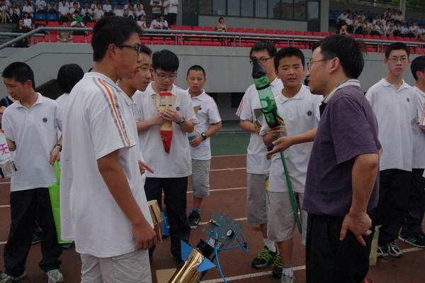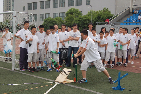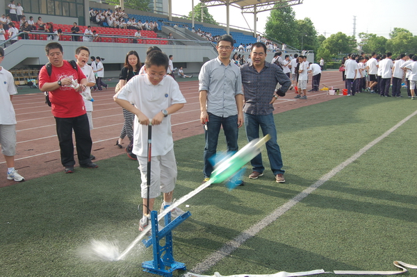 5月16日下午3点15分,备受瞩目的初一年级水火箭比赛在文澜中学操场正式开始。初一年级十个班级共派出百余枚水火箭参赛,本次活动规模空前。