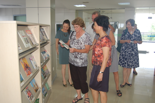 访问团在徐书记的陪同下,参观了校园,对我校一流的教学设施和学生的文明礼貌赞不绝口。