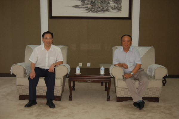 省侨办副主任陈安(左)与任继长校长亲切交流