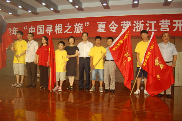 7月11日上午,2012年“中国寻根之旅•快乐浙江行”夏令营开营仪式在我校举行。浙江省侨办副主任陈安、秘书人事处处长陆翔、文教宣传处处长王云奇、杭州市侨办副主任龚勤芳、文澜中学校长任继长、杭州学军中学办公室主任王华琪、杭州采荷第三小学副校长王爱媛、杭州市青少年活动中心副主任刘如一出席了开营仪式。