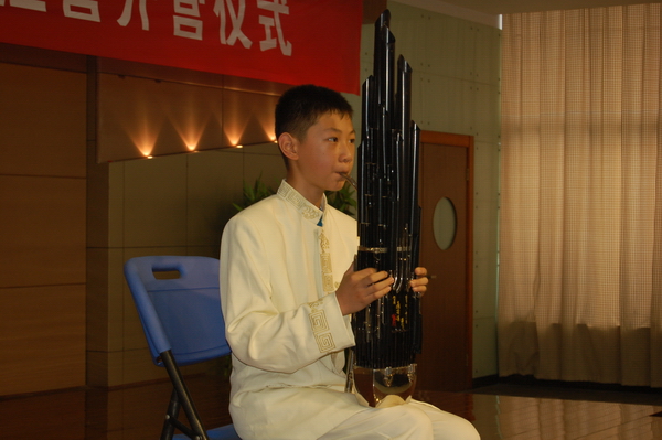 接着省侨办副主任陈安向各分营领导授营旗。仪式最后由各分营承办方表演精彩的文艺节目。我校民乐团表演的中阮齐奏《丝路驼铃》和键笙独奏《西班牙斗牛舞曲》赢得阵阵掌声,把仪式推向高潮。