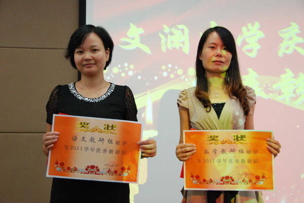 最后,校领导为2012届初三全体教师颁奖,表彰他们在中考中取得的优异成绩。