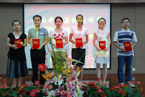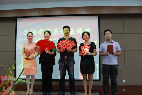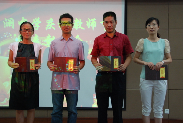 接下来,徐青青书记发表了教师节贺辞,她赞扬了全体教师的勤奋努力和取得的卓越成绩,宣布2011学年各项集体、个人荣誉、教科研成果奖和学生竞赛创新优秀指导教师奖。天堂硅谷集团有限公司张朝洪经理、任继长校长等领导为获奖教师颁发证书和奖金。胡柳蔚老师代表获奖者发言。