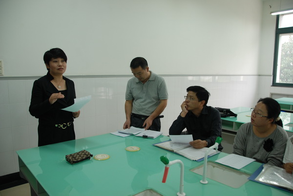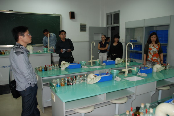 我校实验室是首批省市示范实验室。老师们参观了我校化学、物理、生物实验教室、仪器室、准备室等。参观过程中,薛校长介绍了我校实验室的硬件设施,详细讲解了实验室的常规管理和实验操作规程,引导察看了我校实验记录及实验反思、老师们自制的实验教具。参观者对实验室的规范、细致的工作大加赞赏。