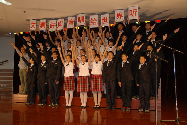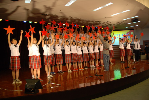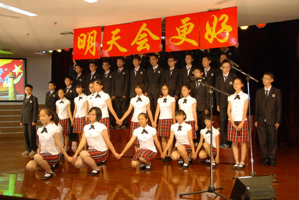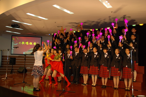 “五十六个星座,五十六枝花,五十六族兄弟姐妹是一家……”9月26日下午,激情澎湃的歌声直上云霄,在校园上空久久回荡,为迎接国庆63周年,增强学生们的爱国热情,我校初二年级“迎国庆•爱中华”合唱比赛在《爱我中华》昂扬的乐曲声中拉开了序幕,用歌声诠释了对祖国母亲的热爱。
