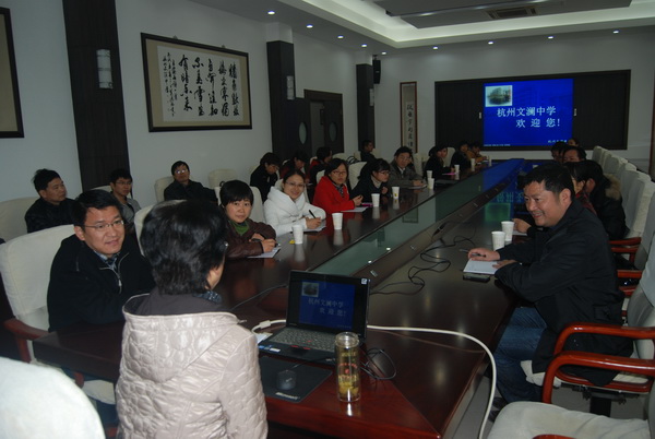 11月29日安吉路良渚实验学校、东阳魏山镇中学等领导老师一行30余人到我校考察交流。徐青青书记热情接待,并从学校概况、办学成绩、文化建设、教学管理等方面详细介绍了我校情况。老师们还深入课堂听课,直接与我校教师进行教学交流。最后考察团的老师们参观了校园,对我校优美的环境、先进的设施十分称赞。