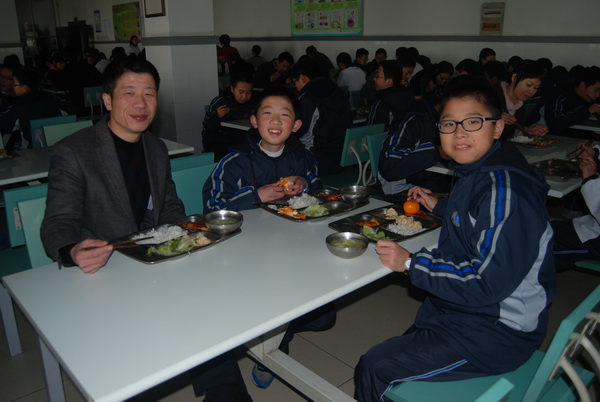 26日周一清晨的晨跑拉开了家长开放周的序幕。部分家长很早来学校看孩子们晨跑,看孩子们吃早餐的情况。他们也与我校师生一起参加了升旗仪式。校领导任继长校长代表学校全体教职员工向参加家长开放周活动的家长表示热烈的欢迎,介绍了我校“立德树人”的教育理念,并鼓励全校同学争做有道德、有理想、有热情的学生。