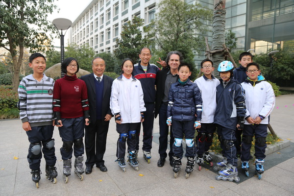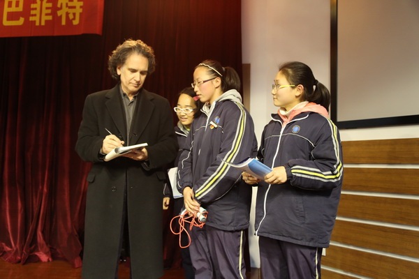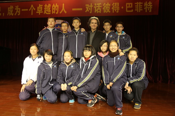 接着,彼得•巴菲特先生兴致勃勃走向演讲厅,学校轮滑队的小同学遇见巴菲特先生,热情地围上来,巴菲特先生高兴地与他们合影留念,巴菲特先生还参观了电子阅览室和学生阅览室。他盛赞我校优美的环境和一流的教学设施。