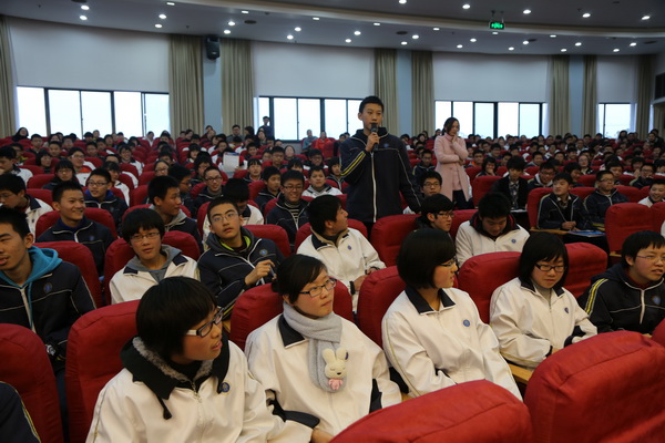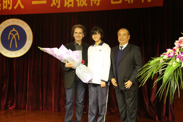 在面对面交流的互动环节,我校初三同学就如何面对当下教育体制、兴趣爱好以及先生学业成绩和成长道路等问题向先生请教,并希望巴菲特先生能为美丽的西湖写些作品。巴菲特先生极为亲切地回答了问题,对我校同学大方的举止和英语口语表达水平赞赏不已。他在演讲中还将股神巴菲特的中学成绩单投在大屏幕上,他说晒父亲老巴菲特当年的成绩单和评语,就是提醒同学不要过于看重一时的学业成绩和评价,而要学会静下心来,听自己内心的真实想法,让自己变得强大。现场有记者看到巴菲特先生一再提醒他的翻译,不要踩到地上的小虫子。对话结束时,他拿起一张纸片,小心地把小虫子移到安全的地方。他优雅的谈吐和爱护动物的细节,深深影响了在场的观众。