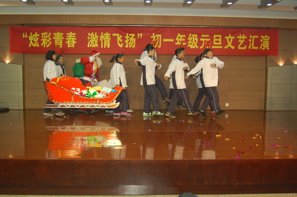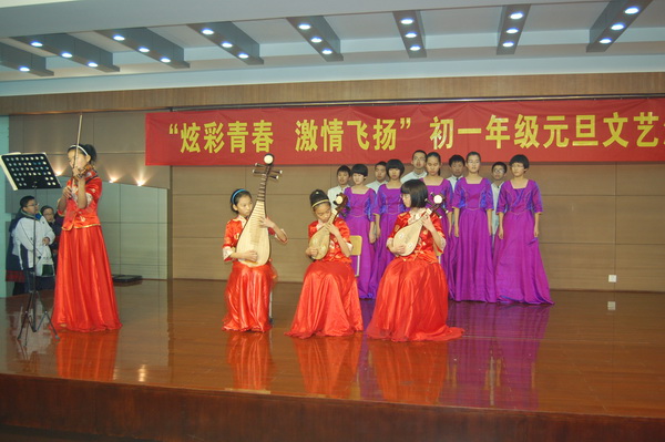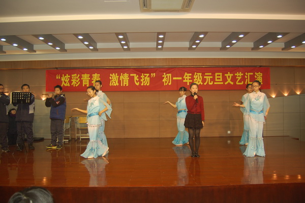 2012年12月29日上午,“炫彩青春,激情飞扬” 初一年级元旦文艺汇演在行政楼四楼多功能厅举行。带着对2013年的期盼,带着多日来的精心准备,同学们的才华和活力在舞台上得以淋漓尽致地展现。