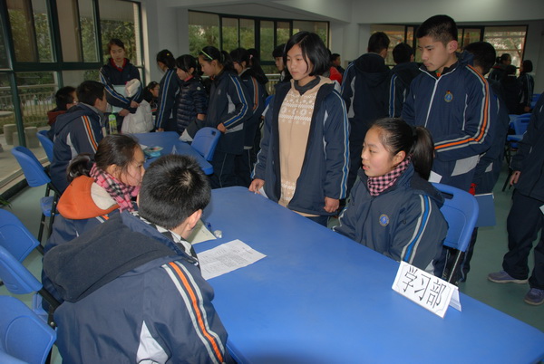 1月10日下午,一年一度的团委、学生会招新活动如期举行。虽已是三九严寒,但学校休闲厅里却是一副热闹非凡的景象。学习部、文体部、宣传部等热门部门的桌子前更是排起了长龙。各部门询问同学的问题可各不相同,有的是关于同学基本的生活学习状况的;有的是了解同学是否在书画、艺术方面有特长的;有的是请同学为社团文化艺术节想点子的。学习部还别出心裁地提出:“你认为才能和才干哪个更重要?为什么?”来测试同学们的口才。不知道你会怎样回答呢?而面对这样五花八门的问题,同学们都表现得十分出色,真可谓是人才辈出啊!学生会,是我们共同的家园,是一片属于我们学生的天地,是一个展现我们能力的平台。参加应聘,加入学生会,将成为我们一份不忘的记忆。从那一张张洋溢着兴奋与期待,从容或是紧张的脸上,我们看到的是学生会崭新的起点,是文澜更加美好的未来!