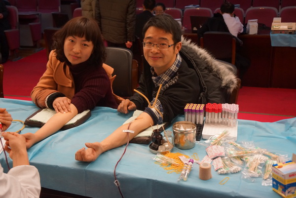 3月1日上午,孙倩、蒋芸芸、樊泽华、赵鹏飞四位老师,一上完课就赶往拱墅区政府3号楼报告厅参加献血。献出一滴血,奉献一份爱,就能汇聚成生命的海洋。他们把无偿献血活动当成一份光荣和一种责任,体现了献血者的爱心和乐于奉献的良好品质。