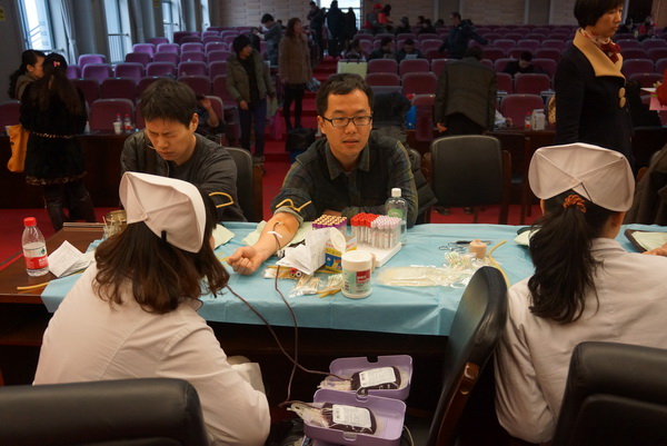 在2013年的无偿献血活动中,我校领导高度重视,全校教职工积极踊跃参加,报名者达20多人。