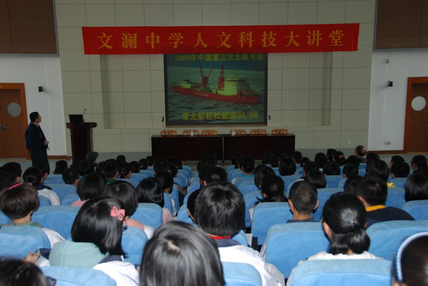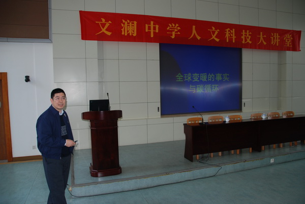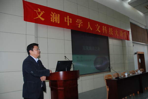 “海洋环境保护”势在必行。国家海洋局二所研究员陈建芳作了《全球变暖的事实与碳循环》报告,他深入浅出,图文并茂地给同学们介绍了全球变暖的原因---CO2升高,C02和全球变暖的后果是海平面上升、海洋酸化和极端气候的出现。让同学们认识到了节能减排、保护环境的重要性。