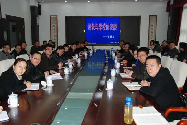 3月26日上午8:30,杭州师范大学浙派名校长高级研修班学员18人,到我校考察学习,听取我校任继长校长的专题报告,了解我校教育教学管理,考察学校选修课和社团活动情况。余杭区20多位中学校长也一起参加了这次考察活动。